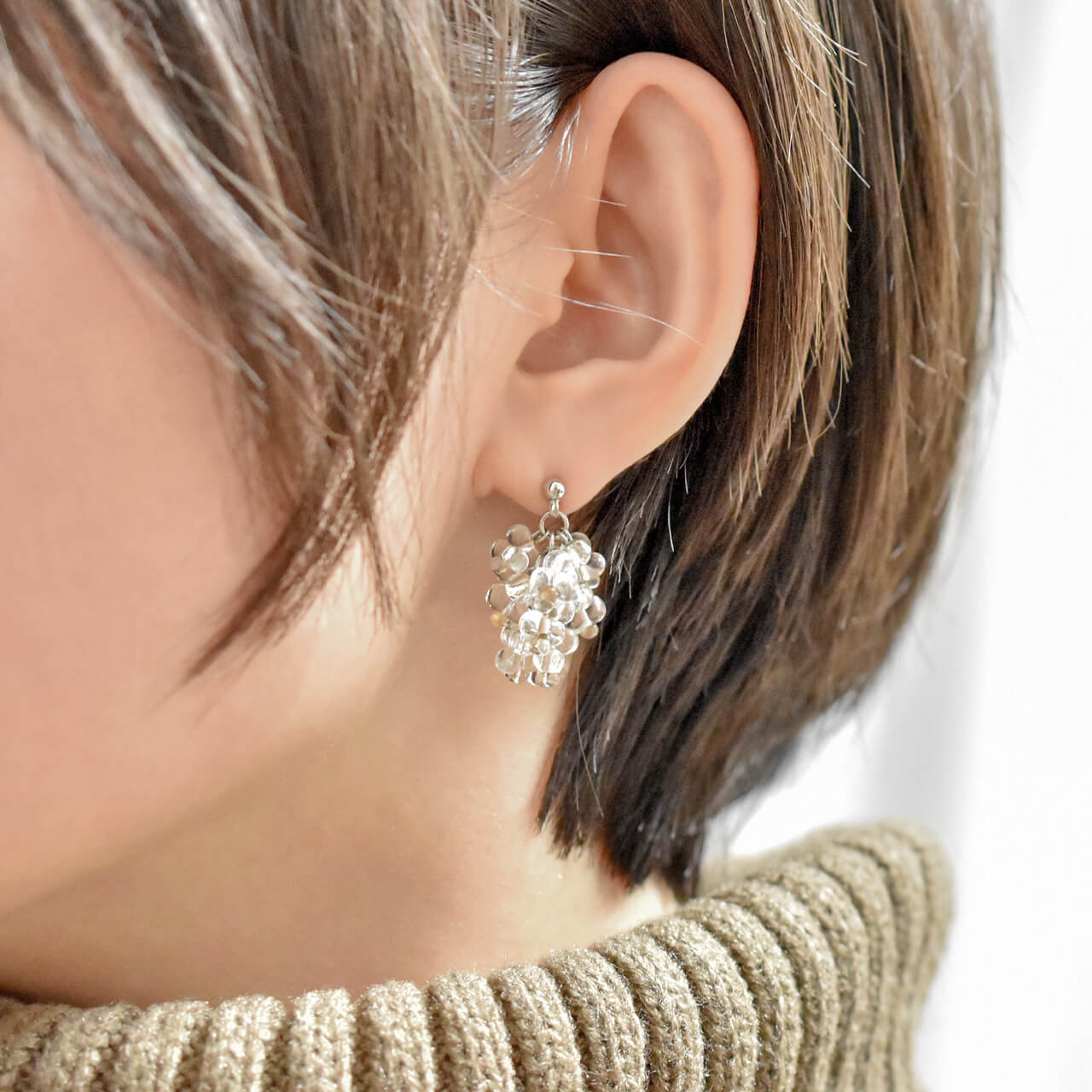 ◇動くたびに耳元でさらさらと音を立てる 藤の花のようなピアス。