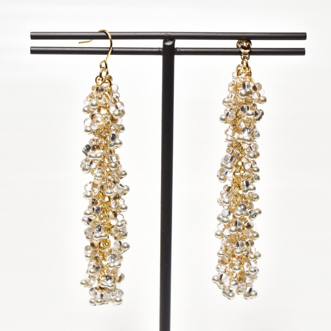 メタリックシルバーのチェコビーズピアス / no.432-透銀long [フックピアス]