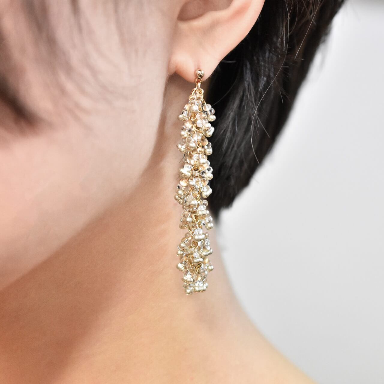 ◇動くたびに耳元でさらさらと音を立てる 藤の花のようなピアス。